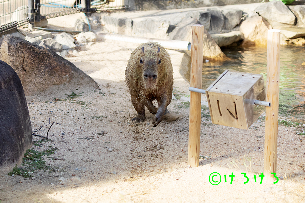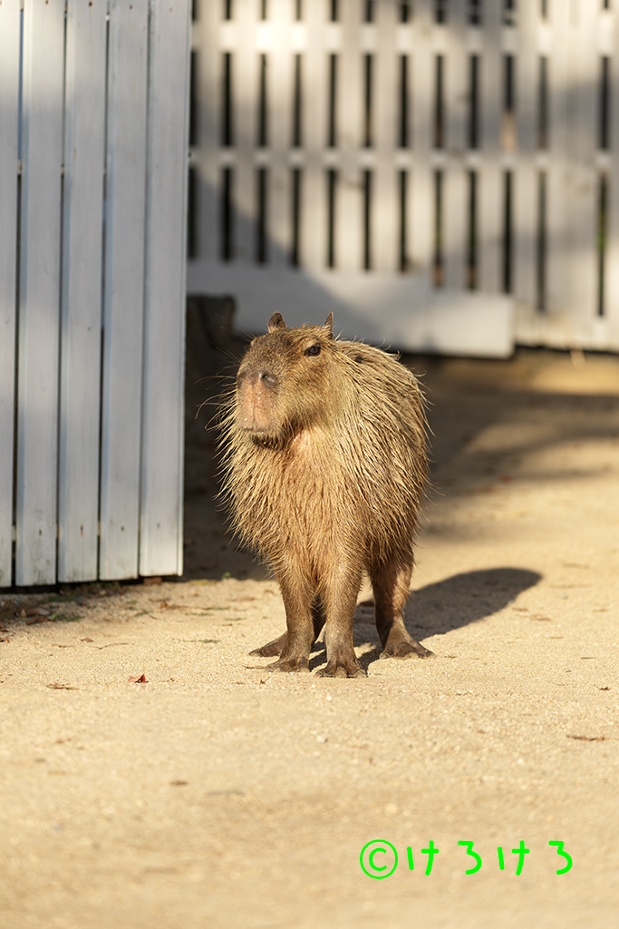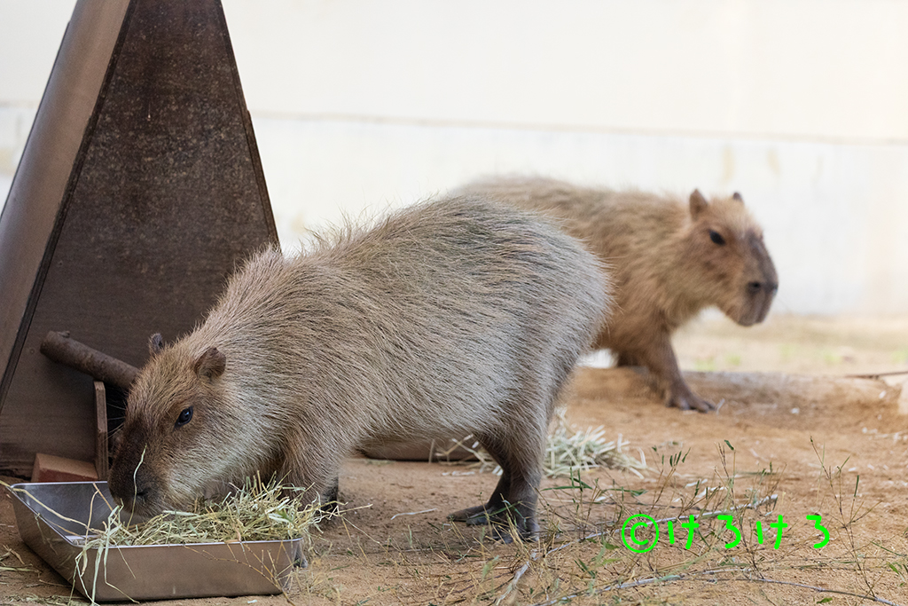 めんまさんお食事中。(後ろはちゃーしゅー)