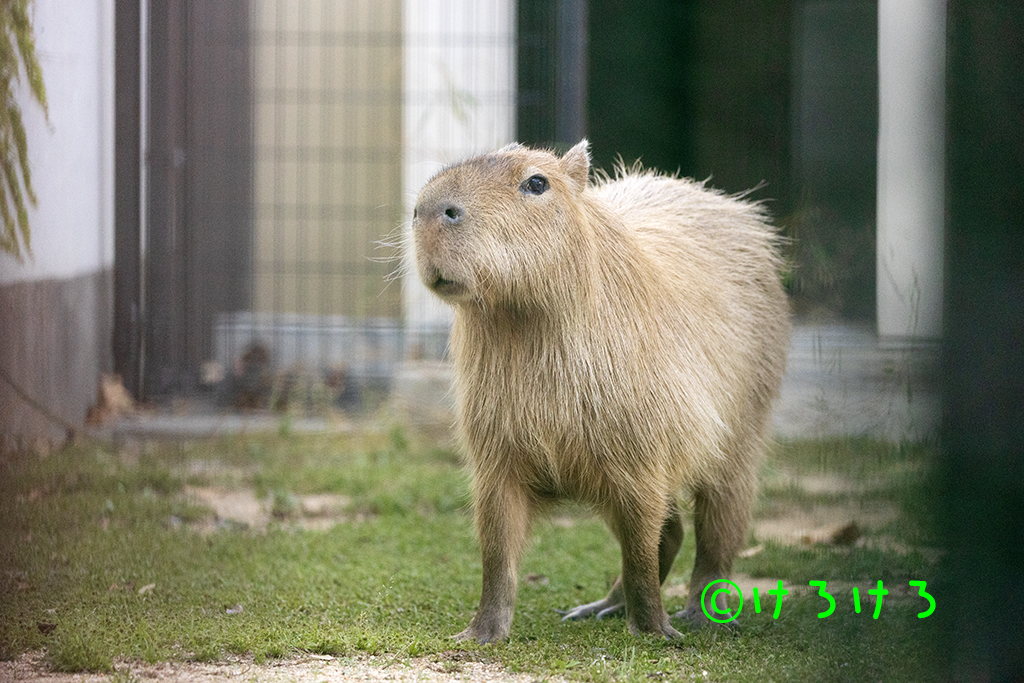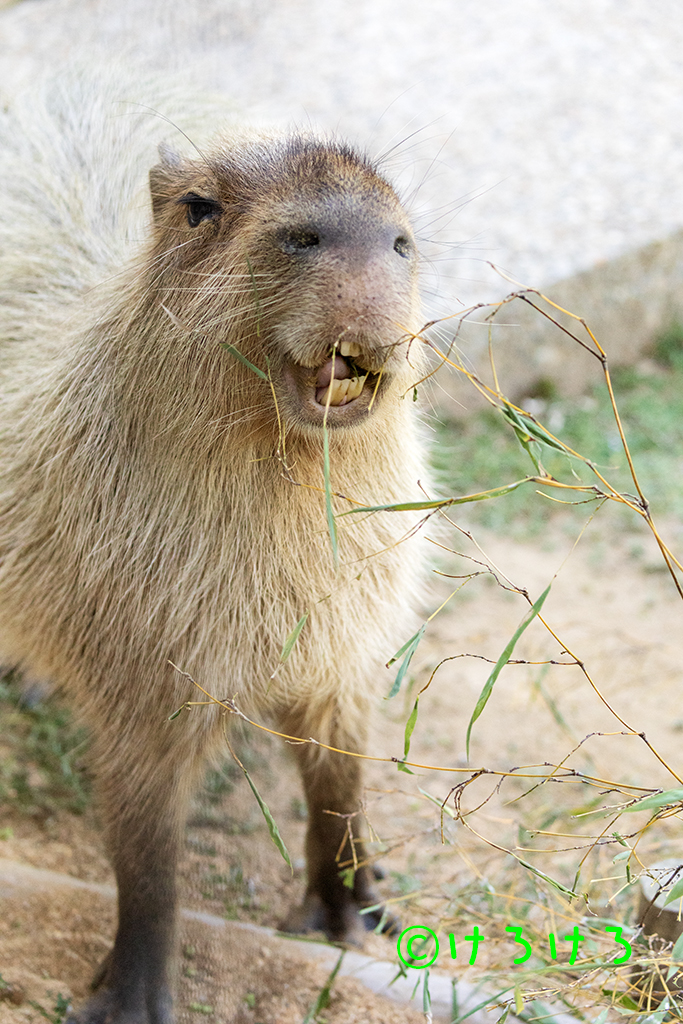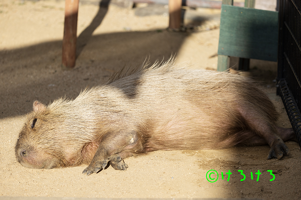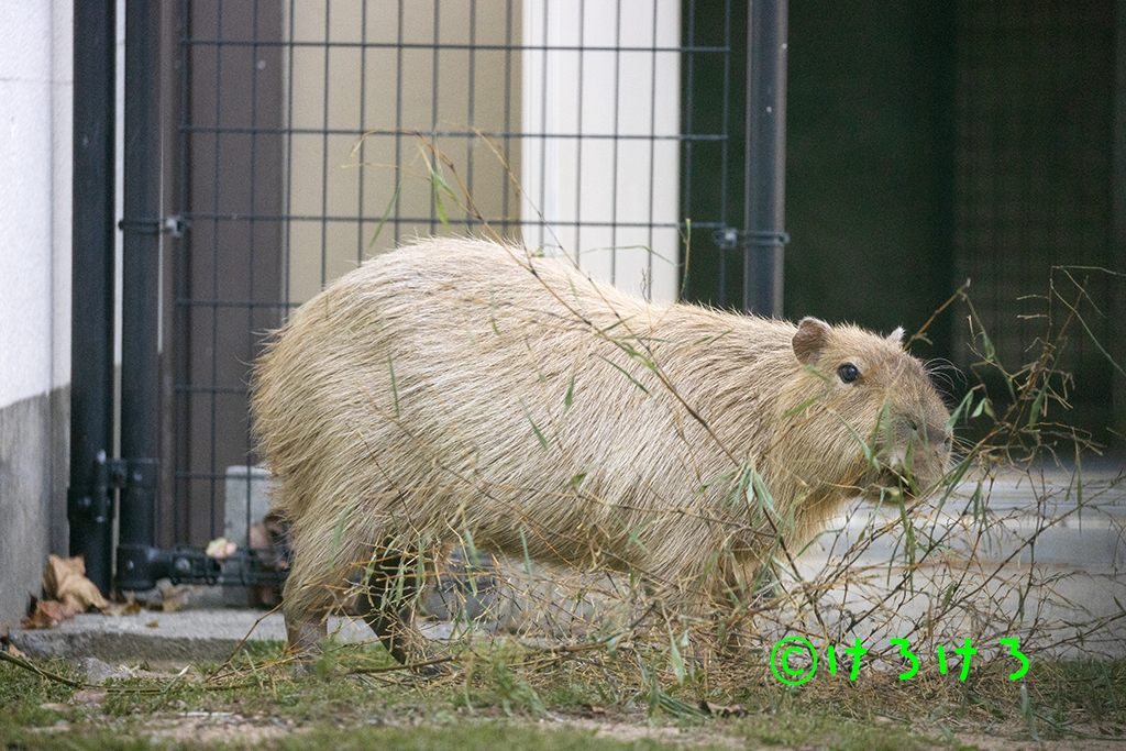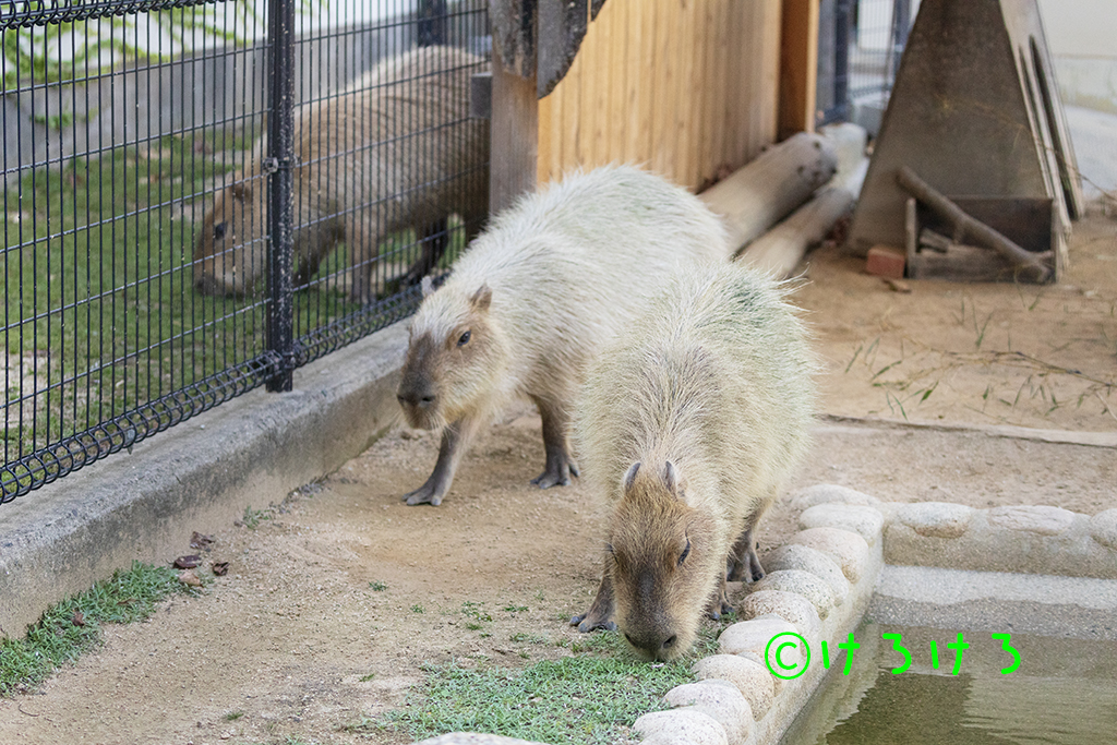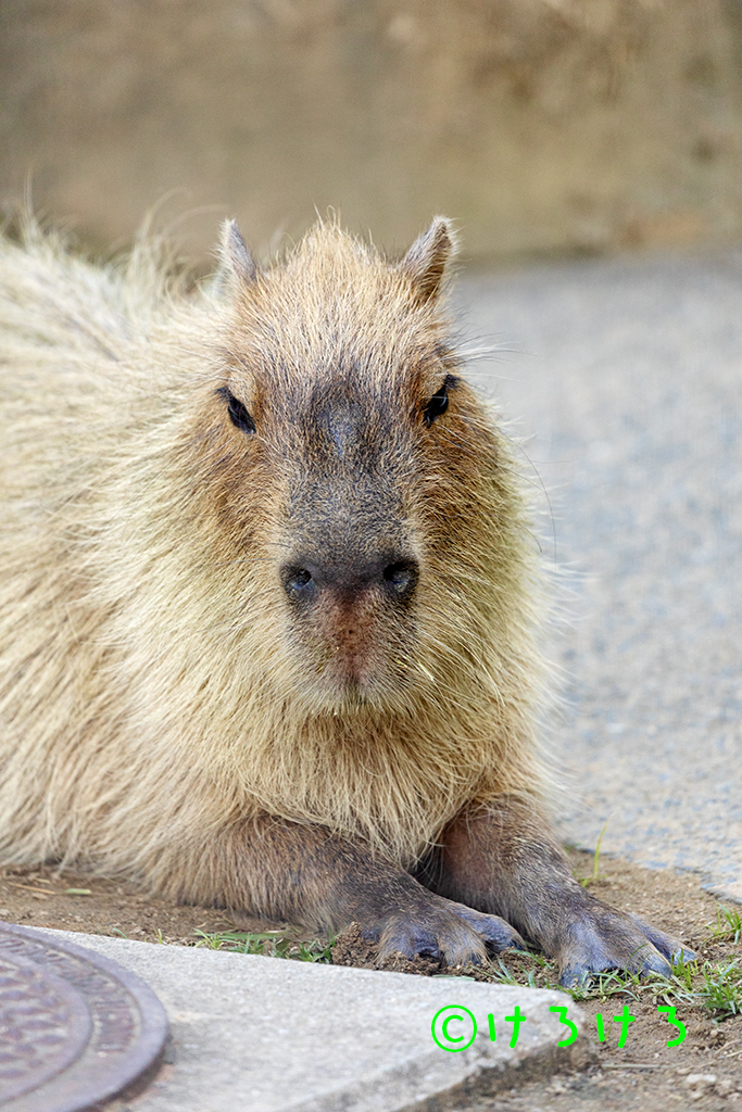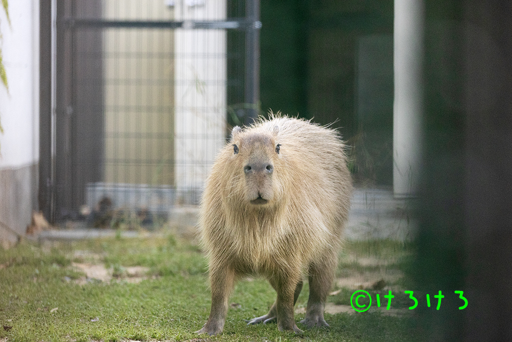カピバラ2025年10月13日 カピバラもうすぐ8歳だね。(あさひ) X Facebook はてブ LINE コピー 2025.10.13 神戸市立王子動物園のカピバラさんです。 涼しくなって外でくつろぐあさひちゃん。 笹ーっ。(あさひ) めんまさん、まどろみ? 真横からめんまさん。 正面顔ちゃーしゅーさん。 ちゃーしゅーさんの定位置。 はむはむちゃーしゅー。 ハッとしたあさひ。 ちょっと固まっていた。(あさひ) むりやり3ショット(手前からちゃーしゅー、めんま、あさひ) ぺろっとかわいい舌が出ていた。(めんま) お鼻まわり、まるいの好き。(めんま) 笹を食べよう。(手前からちゃーしゅー、めんま) お水を飲むちゃーしゅーさん。 笹はむー。(ちゃーしゅー) 笹がぶー。(ちゃーしゅー) あさひちゃん、前脚くにっ。 あさひちゃん、ポーズ。 きりっとあさひちゃん。 もうすぐ8歳だね。(あさひ) お昼寝パピコ。 ごろーん、パピコ。 正面パピコ。 ガチョウの羽舞うプールで。(パピコ) ジャーンプ。(パピコ) はやく帰りたいパピコ。 おうちに帰るよ。(パピコ)