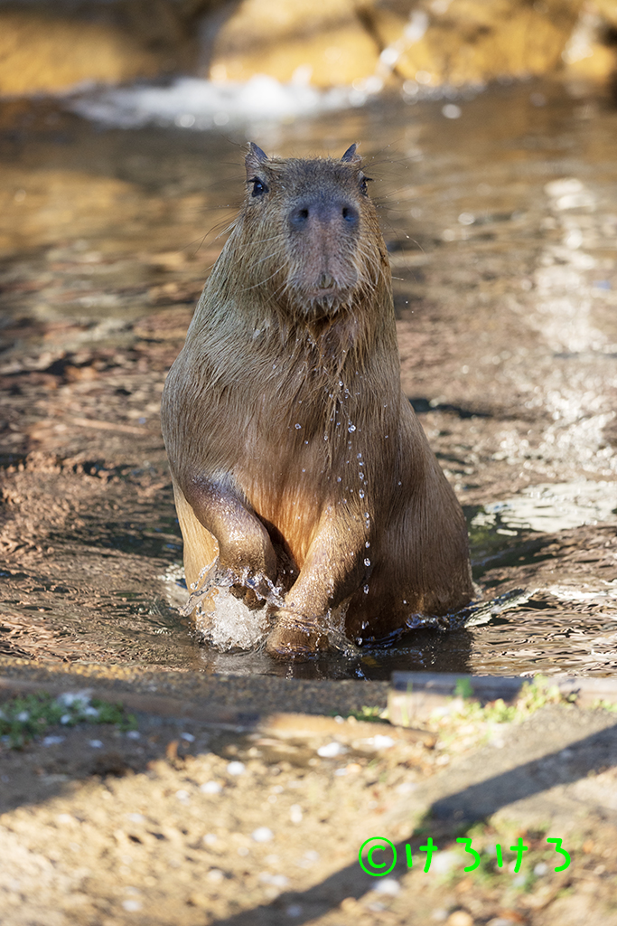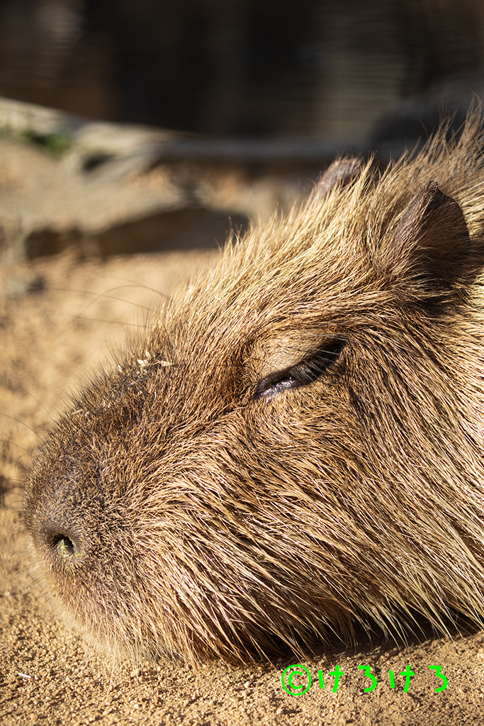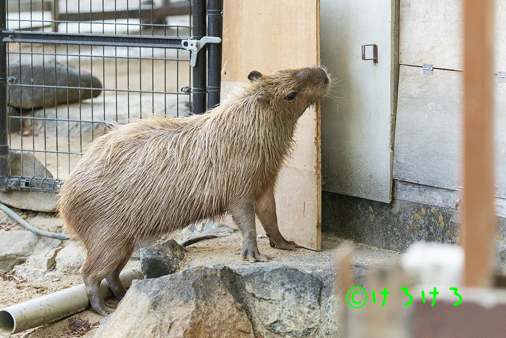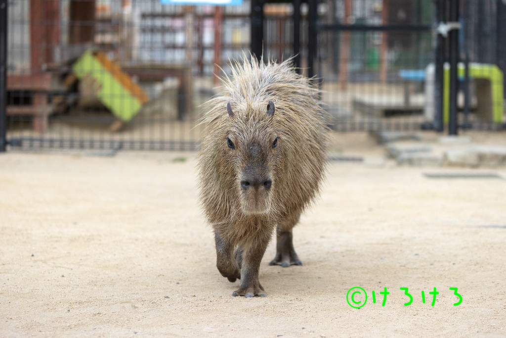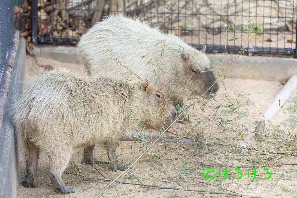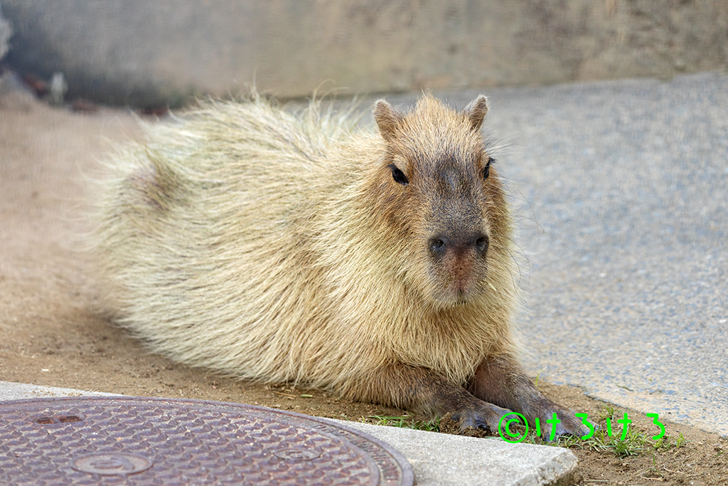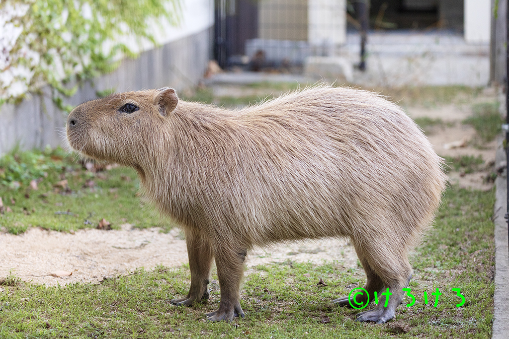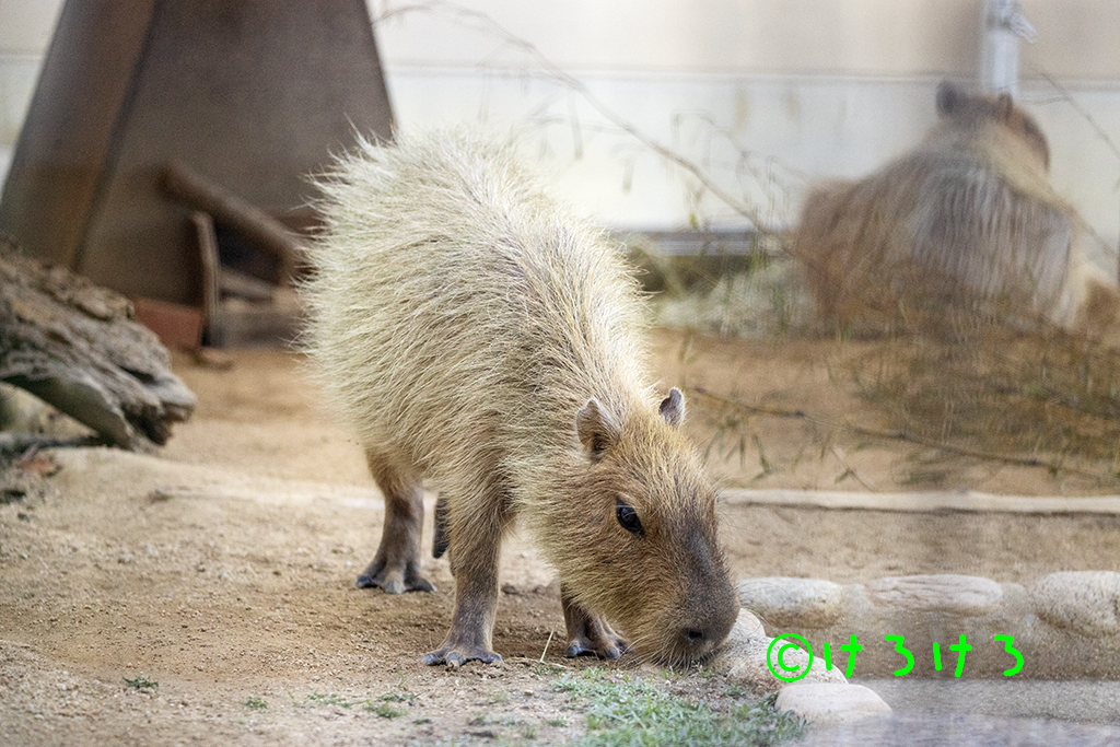 カピバラ2025年10月13日 カピバラもうすぐ8歳だね。(あさひ) X Facebook はてブ LINE コピー 2025.10.13 神戸市立王子動物園のカピバラさんです。 涼しくなって外でくつろぐあさひちゃん。 笹ーっ。(あさひ) めんまさん、まどろみ? 真横からめんまさん。 正面顔ちゃーしゅーさん。 ちゃーしゅーさんの定位置。 はむはむちゃーしゅー。 ハッとしたあさひ。 ちょっと固まっていた。(あさひ) むりやり3ショット(手前からちゃーしゅー、めんま、あさひ) ぺろっとかわいい舌が出ていた。(めんま) お鼻まわり、まるいの好き。(めんま) 笹を食べよう。(手前からちゃーしゅー、めんま) お水を飲むちゃーしゅーさん。 笹はむー。(ちゃーしゅー) 笹がぶー。(ちゃーしゅー) あさひちゃん、前脚くにっ。 あさひちゃん、ポーズ。 きりっとあさひちゃん。 もうすぐ8歳だね。(あさひ) お昼寝パピコ。 ごろーん、パピコ。 正面パピコ。 ガチョウの羽舞うプールで。(パピコ) ジャーンプ。(パピコ) はやく帰りたいパピコ。 おうちに帰るよ。(パピコ)
