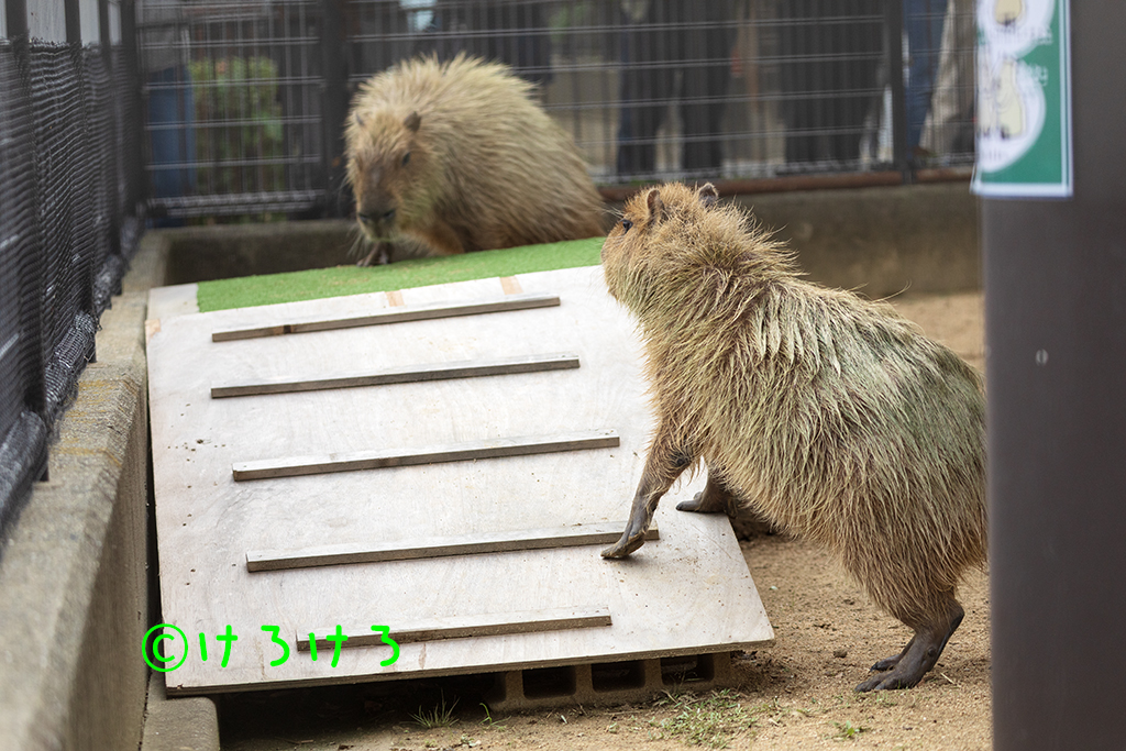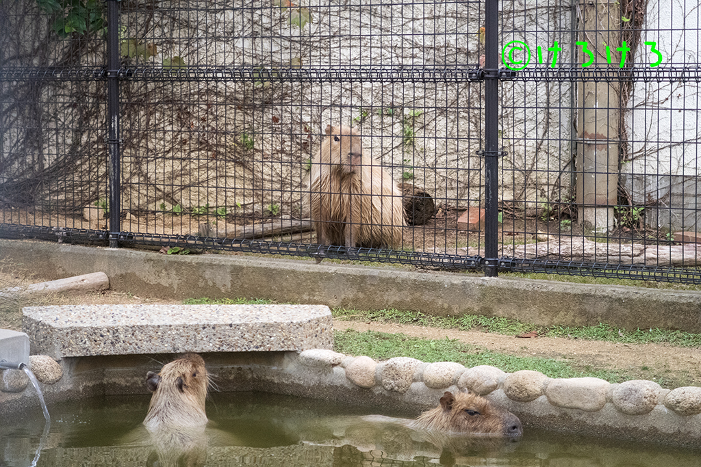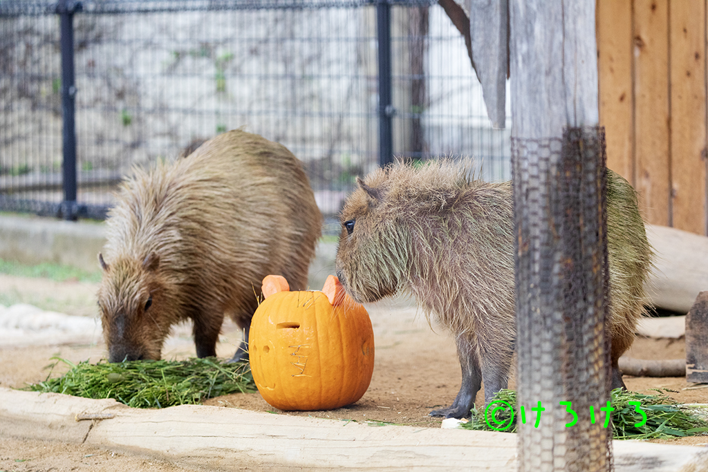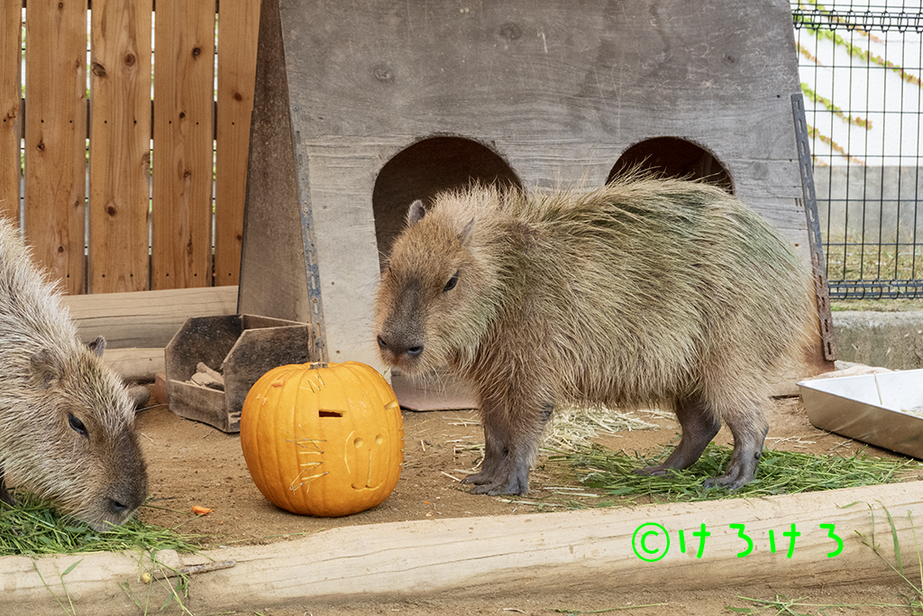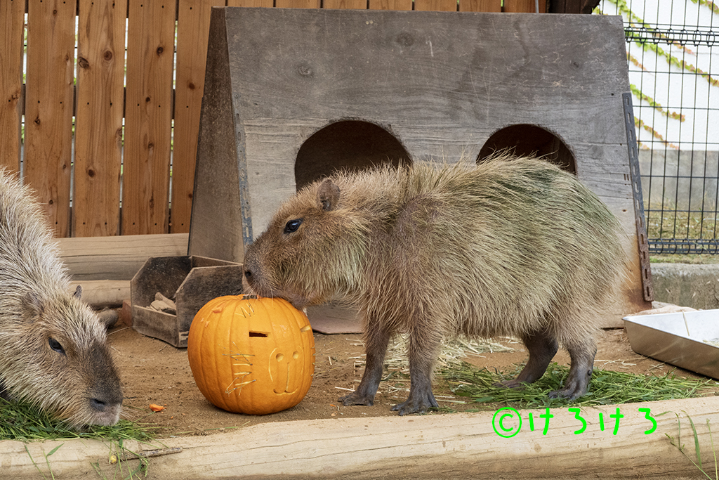 カピバラ2025年11月02日 カピバラめんまさん、右耳をがぶ-。 X Facebook はてブ LINE コピー 2025.11.022025.11.24 神戸市立王子動物園のカピバラさんです。 めんまさん(左)とちゃーしゅーさん(右) 何かあるのかな。(左から、ちゃーしゅー、めんま) お立ち台が気になる2カピ。(手前から、ちゃーしゅー、めんま) お立ち台、リハーサルOK(めんま) お座りちゃーしゅーさん。(奥はめんま) 走り寄る2カピ。(左から、ちゃーしゅー、めんま) カピバラ舎のおばけカボチャ。(耳はニンジン) まずは前菜から。(手前から、ちゃーしゅー、めんま) おばけカボチャの確認中、(ちゃーしゅー) めんまさん、右耳をがぶ-。 めんまさん、左耳をがぶー。 おばけカボチャをやっつけてご満悦(めんま) かじれるところないかな。(ちゃーしゅー) ちゃーしゅーさん、おでこをがじー。 お耳のニンジンもうないよ。(ちゃーしゅー) お耳のニンジンもうないね。(めんま) 食べたのはアナタです。 ヘタをかじるのです。(ちゃーしゅー) めんまさんとカボチャ。 うらめしやー。(あさひ) あさひちゃんは通常営業。 あさひちゃん、おもしろい模様がついていた。 あさひちゃん、おもしろい模様がついていた。 笹をぐいーん。あさひちゃん。 ステップあさひちゃん。 あさひちゃん、横顔かわいい。 カピバラ舎全員集合。(奥、あさひ、左めんま、右ちゃーしゅー) きりっとちゃーしゅーさん。 半身浴のちゃーしゅーさん。 めんまさん、あむー。 ウォーキングめんまさん。 ウォーキングちゃーしゅーさん。 笹たべるねー。(ちゃーしゅー) 昨日イベントを終えたふれあい広場はカボチャ展示継続。(パピコ) お風呂にダイブ!!(パピコ) お風呂にダイブ!!(パピコ) カピバラゆで青草をはむる贅沢パピコ。 おはながピンク。(パピコ) 転がるカボチャ。(パピコがお鼻でおしました) カピバラホームからお出まし。(パピコ) パピコちゃん、おうちに帰るよ。 帰るのです!(パピコ)
