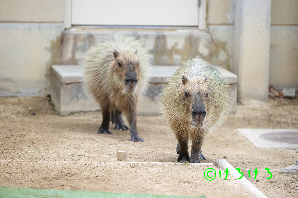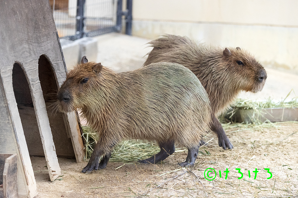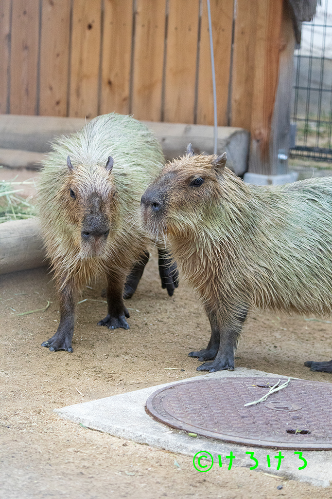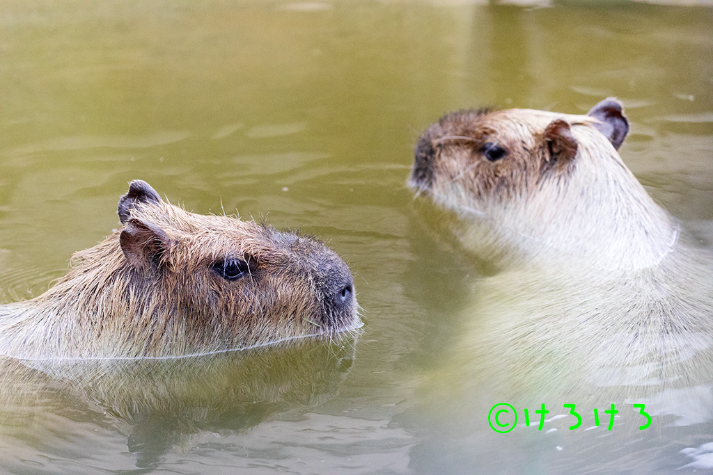 温泉気持ちいいね。(左からちゃーしゅー、めんま)