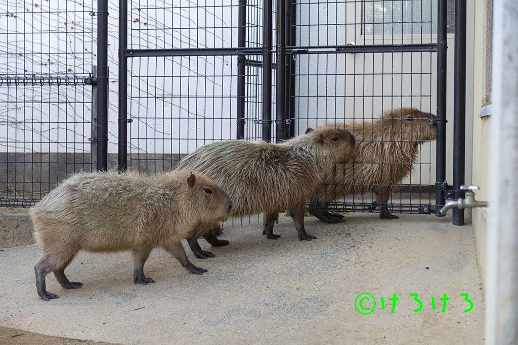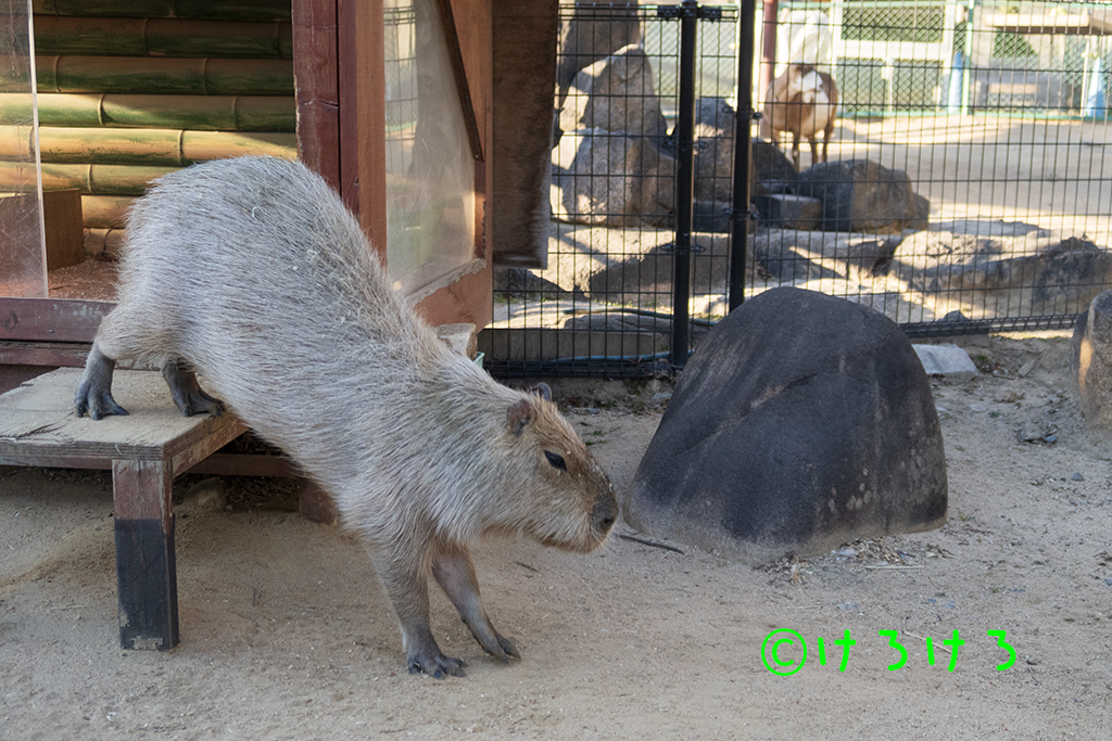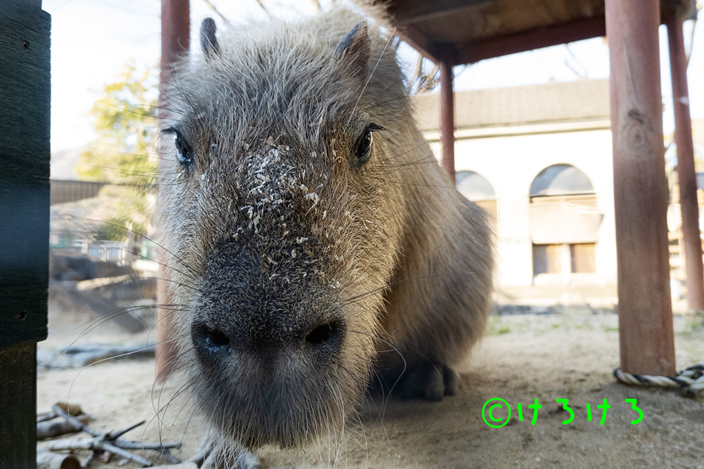 カピバラ2026年01月12日(王子動物園) カピバラこの日のちゃーしゅーさんおしりの模様が面白かった。 X Facebook はてブ LINE コピー 2026.01.12 神戸市立王子動物園のカピバラさんです。 この日のちゃーしゅーさんおしりの模様が面白かった。 この日のちゃーしゅーさんおしりの模様が面白かった。 この日のめんまさん、お鼻の周りの模様が個性的。 得意げなめんま。 お口がみどりー。ちゃーしゅーさん。 短いちゃーしゅーさん。 めんまさん、お風呂に向かいます。 あさひちゃんです。 並んでいた(右からあさひ、めんま。ちゃーしゅー) ぽよ~ん、(パピコ) パピコが近寄ってきた。 お顔近いよ。(パピコ) 枝をカミカミ(パピコ) とびおり(パピコ) とびだし(パピコ) あるいてきたよ。(パピコ) ぬぬーんパピコ。 おうちに帰ろう。 おうちに帰ろう。